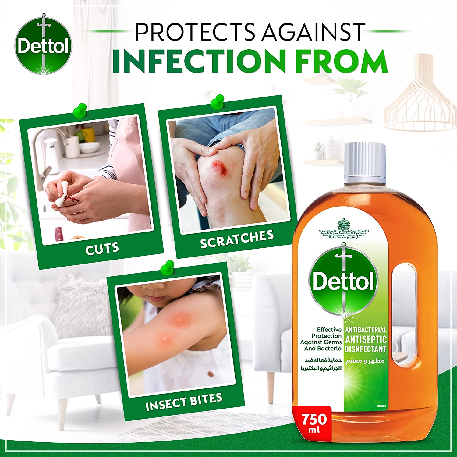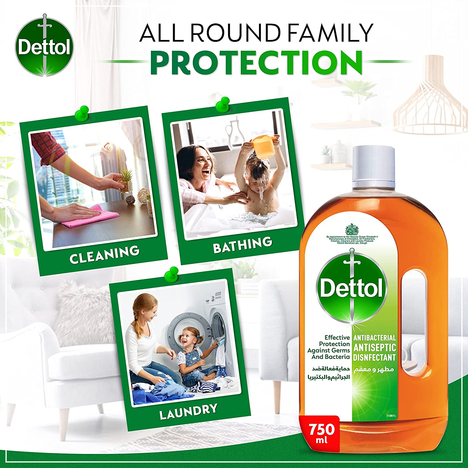 Dettol Antiseptic Antibacterial Disinfectant Liquid para sa Epektibong Proteksyon ng Mikrobyo at Personal na Kalinisan, Ginagamit sa Paglilinis, Pagliligo at Paglalaba, 750ml