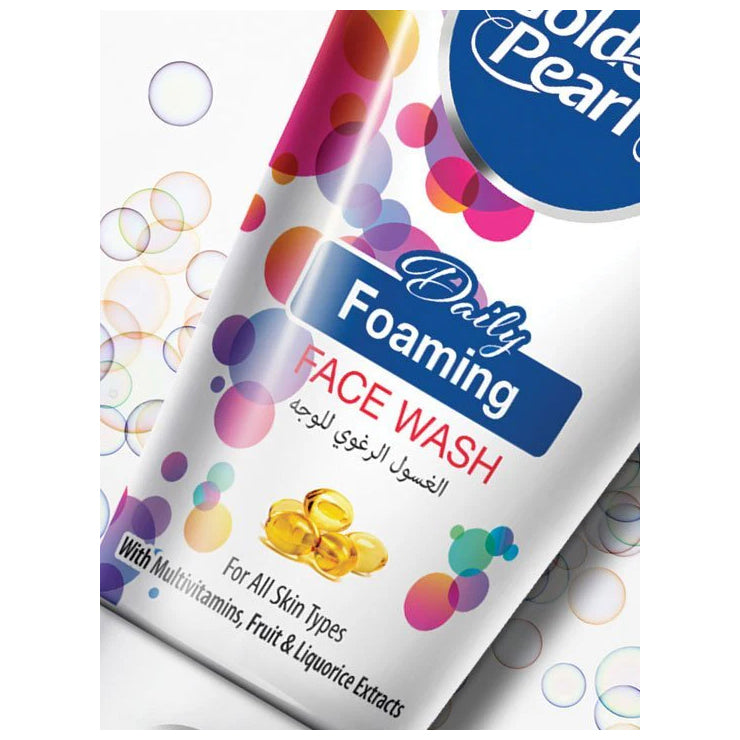 • Golden Pearl Foaming Face Wash with Vitamin B3, E and C gives you a healthy, glowing and youthful skin by removing excessive oil from your face and cleaning impurities that build up throughout the day. It also contains a natural blend of liquorice and lemon extracts that help to reduce dark spots and pigmentation. Its regular use reveals clearer skin.Ingredients:Deionised Water, Sodium Laureth Sulphate, Cocamidopropyl Betain, Guar, Cocamide Dea, Niacinamide Vitamin B3, Glycerin, Sodium Ascorbyl Phosphate (Vitamin C), Tocophenyl Acetates (Vitamin E), Glycol, Eistearate Extract Of Lemon, Alpha Hydroxy Fruit Acids, Sodium Chloride, Dmdm, Phenoxyethanol, PerfumeHow to Use:Squeeze a dime-size amount of Golden Pearl Foaming Face Wash into your palm and add a few drops of water to make lather. Apply it to the face and neck thoroughly and massage gently. Rinse with warm water and pat dry. Feel the freshness and glow on your face every time you use this face wash.