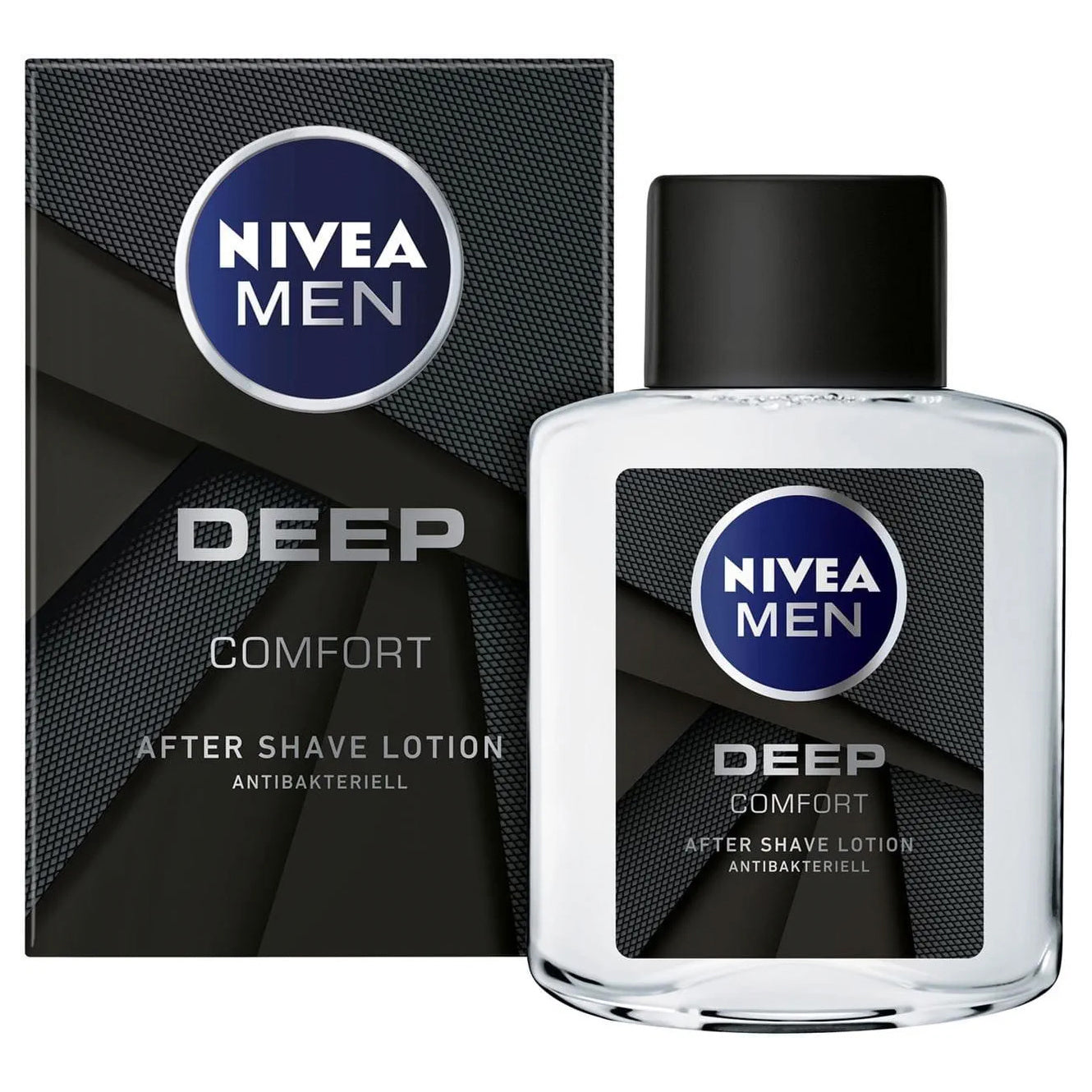 NIVEA MEN DEEP After Shave lotion supports the recovery from shaving irritations, leaving nothing but a clean and comfortable skin feelings. NIVEA MEN Deep Comfort After Shave Lotion protects your skin from drying out. The formula with anti-bacterial effect supports the recovery from shaving irritations, leaving nothing but a long-lasting clean feeling. Your skin recovers quickly after shaving. The product leaves the skin feeling fresh with a masculine scent. Your skin will feel clean and comfortable after shaving. The skin compatibility of this after shave lotion has been dermatologically approved.LIST OF INGREDIENTS Included:Aqua, Alcohol Denat., Propylene Glycol, PEG-40 Hydrogenated Castor Oil, Limonene, Linalool, Alpha-Isomethyl Ionone, Coumarin, Geraniol, Citronellol, Parfum