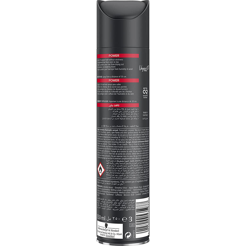 • TAFT POWER HAIR LACQUER: Strengthens the hair from roots to tips HOLD 5: Up to 72h power hold without stickiness PROTECTION: Helps to protect your hair from drying out. Helps to protect your hairstyle from humidity & wind"
