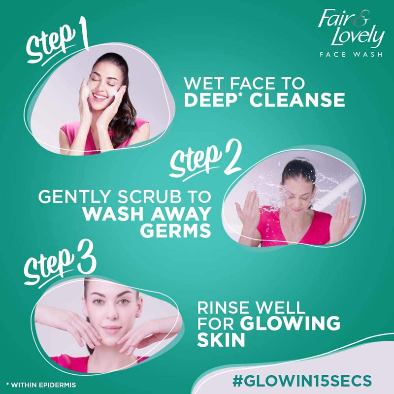 • Mild yet effective deep* cleanse to wash away germs Infused with aloe vera for skin that feels hydrated and fresh Formulated with Multi vitamins to restore skin's moisture balance Hydrated glowing skin, instantly! Specially formulated for all skin types, especially dry skin Fair & Lovely Insta Glow Facewash is also available in 1. Insta Glow 2. Anti pimple 3. Oil Control Gel"