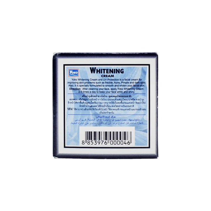 Experience brighter, more even skin with Yoko Whitening Cream. Our specially formulated cream promotes a healthy, radiant complexion. Infused with powerful ingredients, this cream helps reduce the appearance of dark spots and discoloration, leaving you with a natural glow.