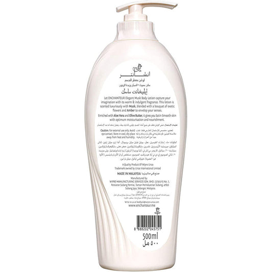 ENCHANTEUR SATIN SMOOTH- ELEGANT MUSK LOTION WITH ALOE VERA & OLIVE BUTTER FOR SATIN SMOOTH SKIN, FOR ALL SKIN TYPES, 500 ML
