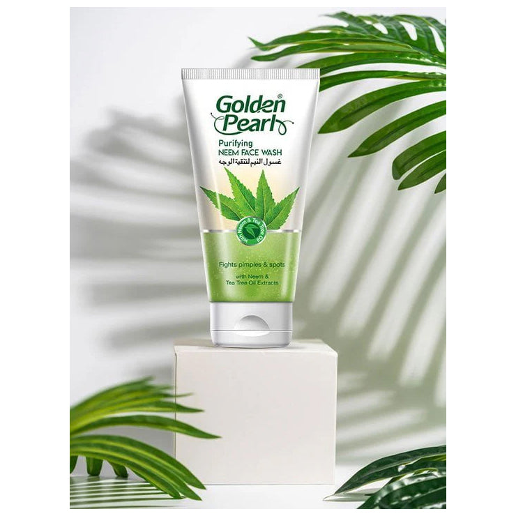 • Golden Pearl Active Neem Face Wash is a gentle cleanser, which removes dirt and other impurities from your skin, leaving it soft and clean. Rich in Neem and Tea Tree oil extracts, it treats pimples, acne and powerfully prevents future breakouts. Say goodbye to acne with our Active Neem Face Wash.How to Use: Squeeze a dime-size amount of Golden Pearl Active Neem Face Wash into your palm. Add a few drops of water to make lather. Apply it to your face and neck area and gently massage for 60 seconds. Rinse with warm water and pat dry.Ingredients: Deionised Water, Cellulose Gum, Sodium Laureth Sulphate, Sodium Lauroyl Sarcosinate, Cocamide Mea, Cocamidopropyl Betain, Propylene Glycol, Salisylic Acid, Tween -20, Sodium Chloride, Neem Extract, Perfume, Apple Green Colour.