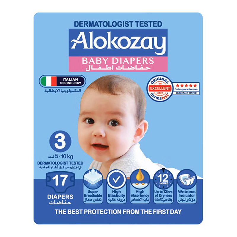 Alokozay Premium Baby Diapers - Size 3 (5-10 Kg) Leakage Protection - 17 Diapers