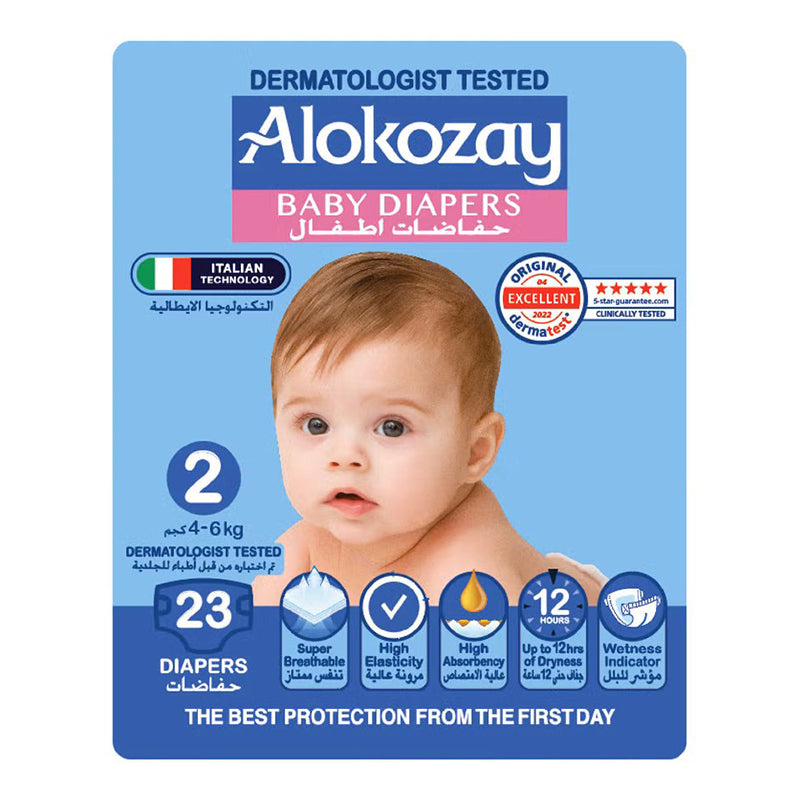 Alokozay Premium Baby Diapers - Size 2 (4-6 Kg) Infant Baby Diapers- 23 Diapers