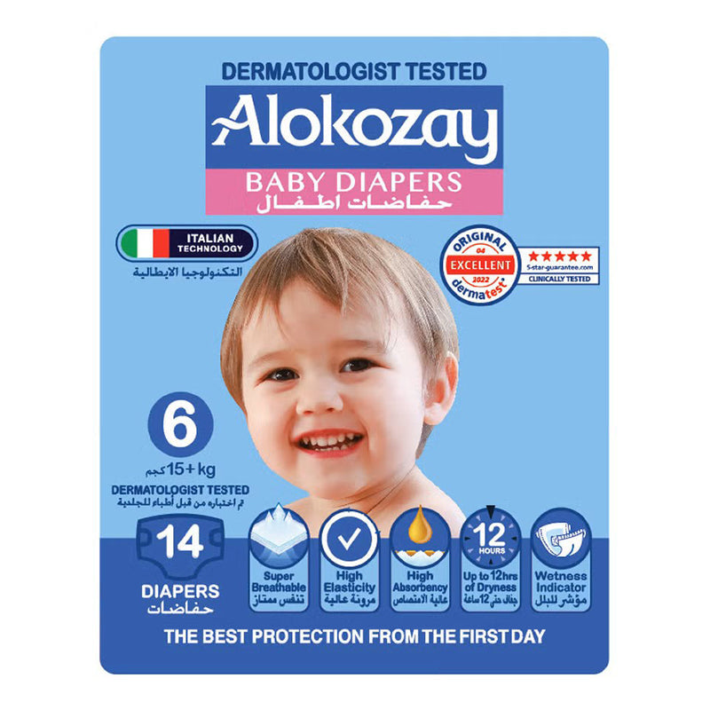Alokozay Premium Baby Diapers - Size 6 (15+ Kg) Diapers for Toddler - 14 Diapers