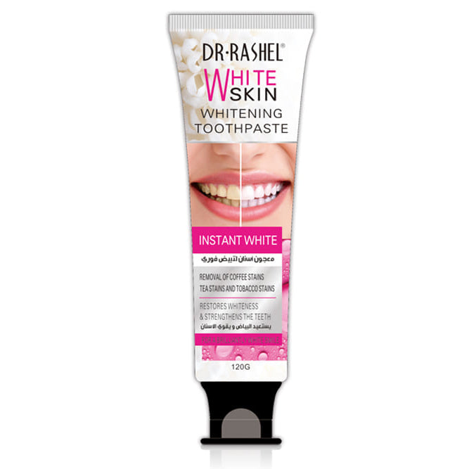 • You can smile confidently when you use DR.RASHEL whitening toothpaste. It not only offers the benefits of regular toothpaste but also refreshed and whitens teeth by gently removing surface stains. This teeth-whitening toothpaste is specially formulated to eliminate stains and fight against cavities, plaque and gingivities while preventing the occurrence of new stains and tartar buildup