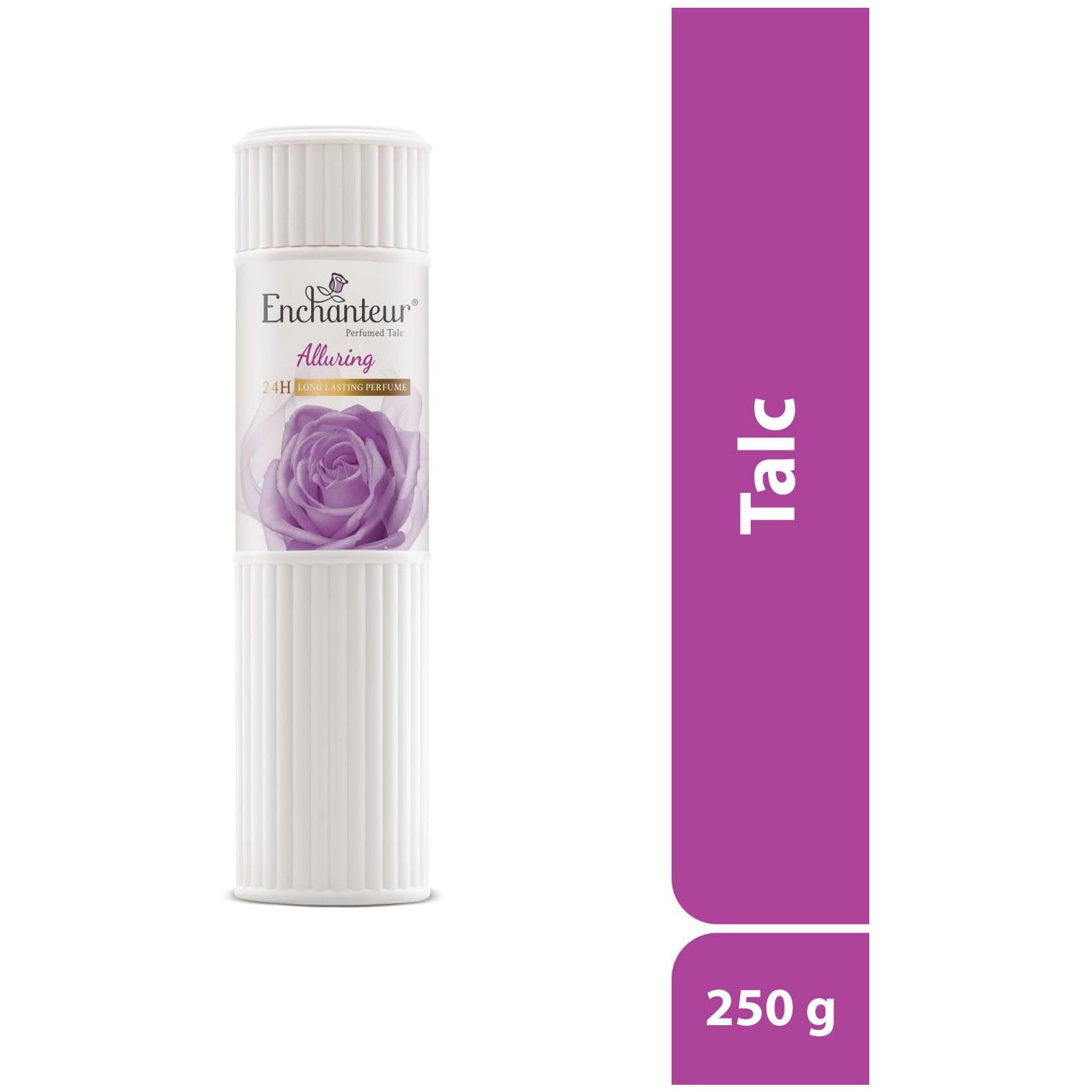 Enchanteur Alluring Perfumed Talc is infused with endearing notes of roses, bergamot, passionfruit and Iris inspired by French romance and passion. Get swept off your feet with an alluring blend of floral fragrances and French finesse. The sensual, sweet smell of passionfruit flowers is blended with the classic notes of roses and exotic Irises. The fragrance is designed to make a woman feel bold and inspire a sense of adventure and romance. Comes in 250 g pack.